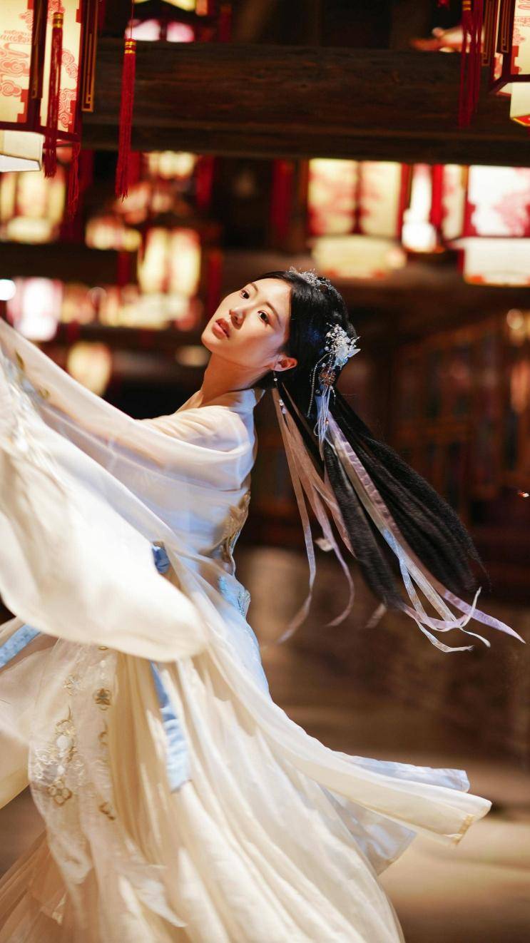 在曝光的照片中,黄益斐身着飘逸的白色古装长裙,面料质感上乘,随风轻轻飘动,更显身姿婀娜。头上仅佩戴了两个简约的白色发钗,却恰到好处地增添了几分古典韵味,发钗上的流苏随着她的动作轻轻晃动,灵动而唯美。其中一张照片捕捉到她在古亭中翩翩起舞的画面,她的舞姿轻盈优美,举手投足间尽显优雅气质,与周围的古色古香的环境完美融合,宛如一幅绝美的古风画卷。